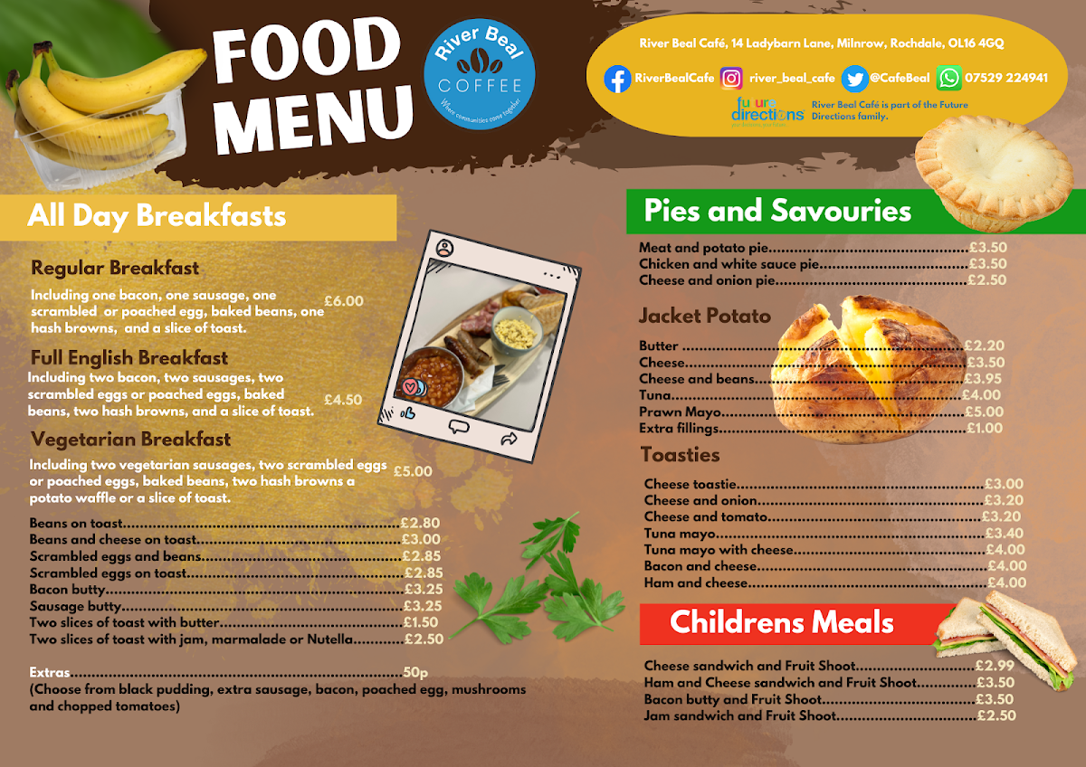 Welcome to River Beal Café, a delightful gem nestled in the heart of Milnrow, Rochdale. Whether you’re looking for a cozy spot to unwind or a friendly space to catch up with friends, this café proves to be the perfect destination. With its airy ambiance, thoughtful decor, and a welcoming atmosphere, you'll find yourself wanting to linger a little longer.